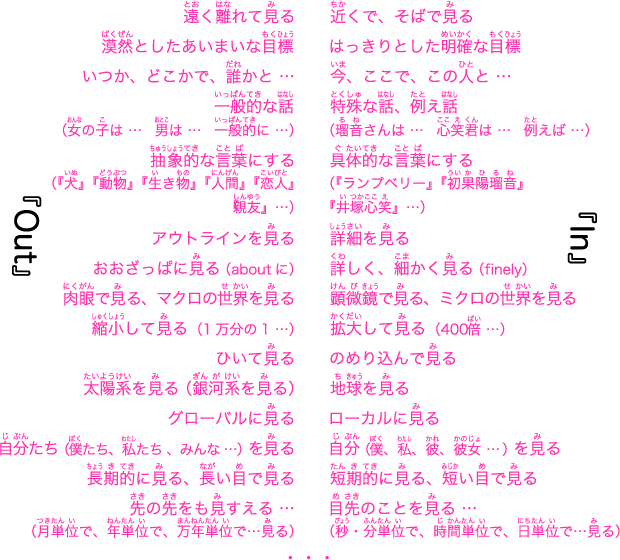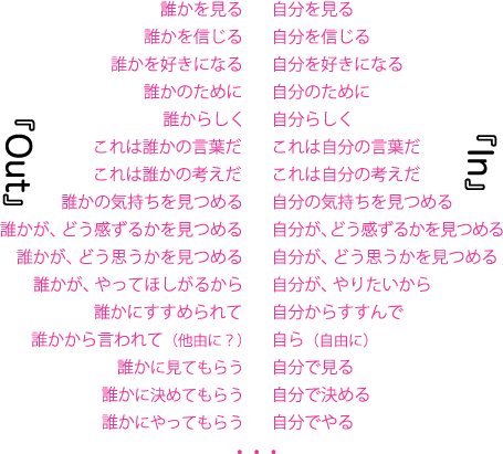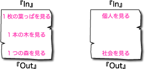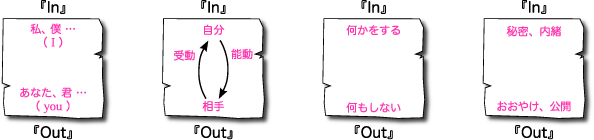 “ある時代の中で”が『In』の方向、“ある時代から外れて”が『Out』の方向にあるという気づきだった。